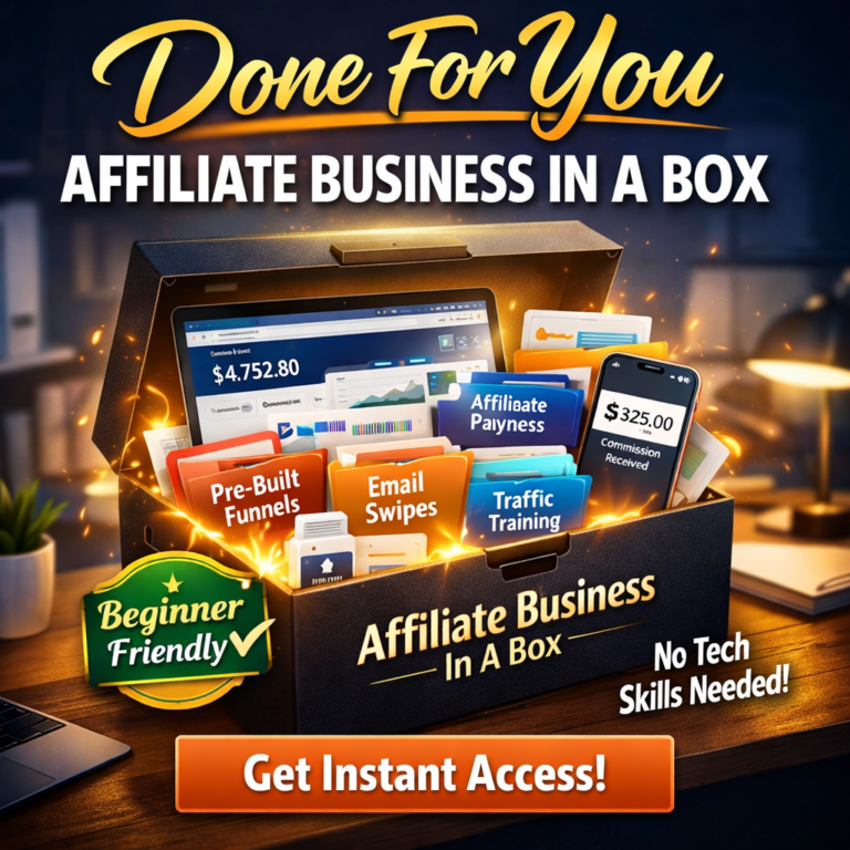If you’re looking for a practical way to apply what you’ve learned here, instead of piecing together funnels, email tools, offers, and traffic strategies on your own, you can start with a structured, done-for-you true business-in-a-box affiliate system—a system that already includes: